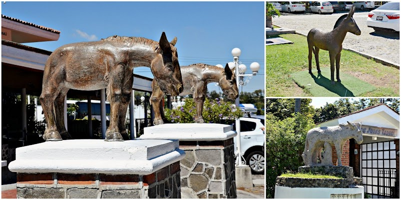Каждый день мы питались этим блюдом в разных вариантах, потому что Хесус его невероятно любил, и ездили для этого в ресторан Judas Tadeo. Название блюда "бурритос" переводится, как "ослики". Наверное, потому, что толстенькие и серенькие блинчики напоминают мексиканцам серых осликов. В честь этого важного момента на территории ресторана хозяин распорядился расставить статуи осликов во всевозможных забавных и простых позах. Это ли не решение бизнесмена?